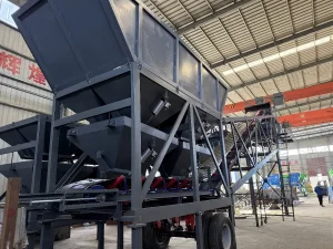 Common types of mixers include double shaft mixers and vertical shaft mixers. They are the core part of mobile cement batching plant, used to mix raw materials such as aggregates, cement, and water evenly.